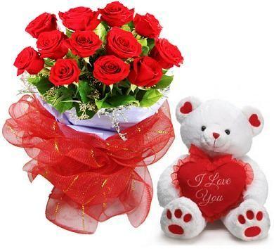 12 Pink Roses, 16 pcs Ferrero Rocher Chocolate Box with FREE Balloon