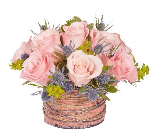 12 Pink Roses Basket